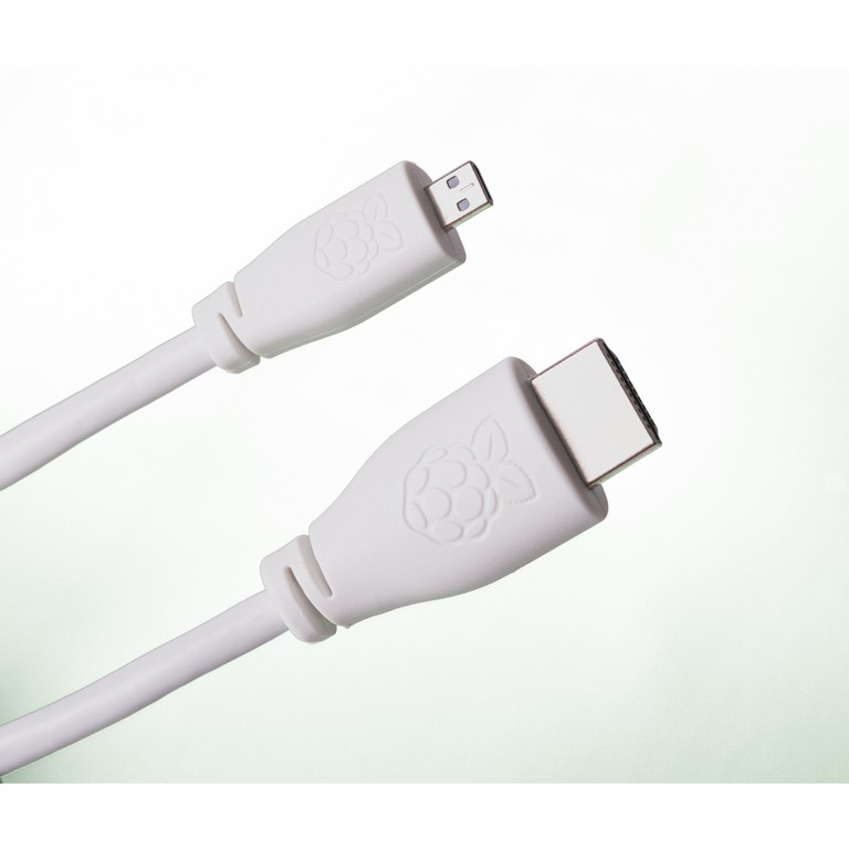 The Official Raspberry Pi micro HDMI to HDMI (A/M) cable designed for the Raspberry Pi 4 computer.